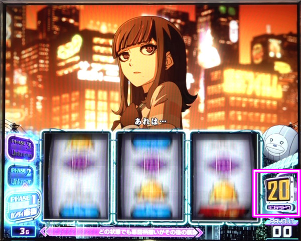 リール右下に表示されており、20ptから減算がスタート。ポイントが「0」になればCZ「アナライズチャレンジ」突入を抽選する。