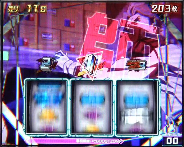 7ゲーム継続する、上位AT「超S級アクダマドライブ」のゲーム数上乗せ特化ゾーン。平均上乗せゲーム数は約115G。
