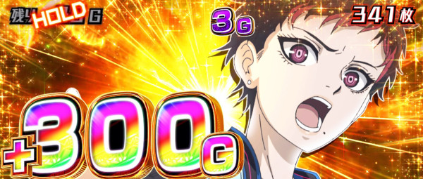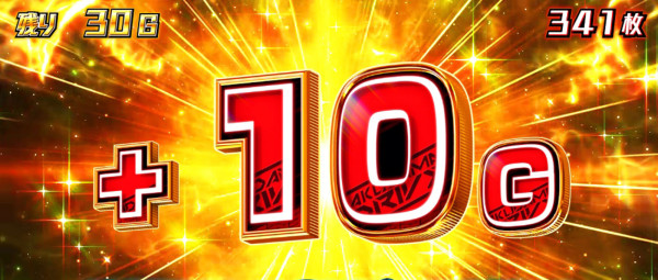 ステップアップ上乗せで展開。20Gや30Gの上乗せが多いが、50Gを超えると300Gのチャンス!?