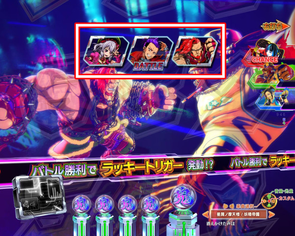 なお、バトル発展時は大当り(約1/53.2)or転落小当り(約1/21.1)に当選。転落小当りに当選した場合はバトル敗北となる。