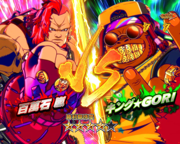 敵キャラクターは義経<蘭&椿<GORIの順に期待度がアップし、GORIなら好敵手BATTLE。