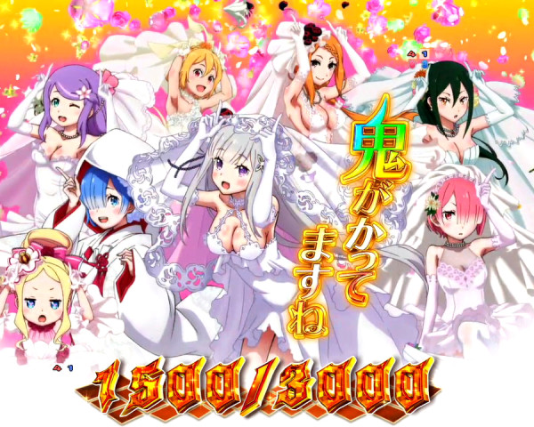 また、大当り時は約40%が3,000発獲得可能な鬼がかり3000BONUSとなっており、ウエディング告知が発生すれば鬼がかり6000BONUS!?
