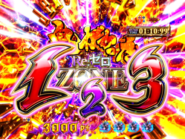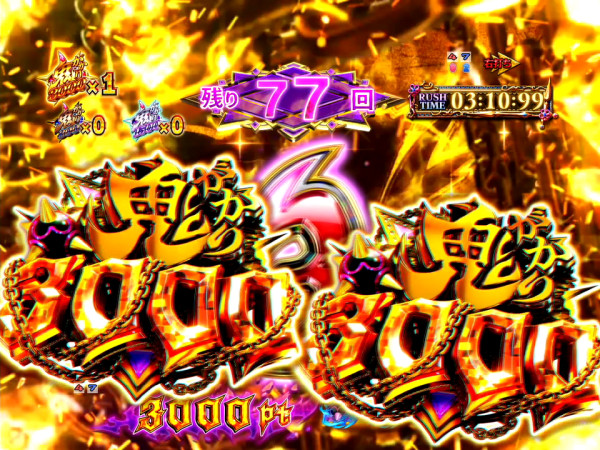 [鬼がかり3000]図柄揃い、BIG BONUS中に昇格した場合に突入する、3,000発獲得可能な大当り。