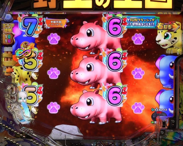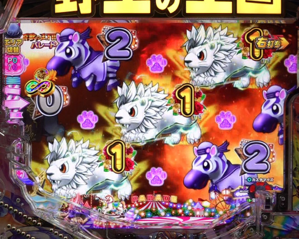 約1,000発獲得可能な10R確変大当りで、ラウンド終了後は「百獣の王TIME(∞)」へ突入。