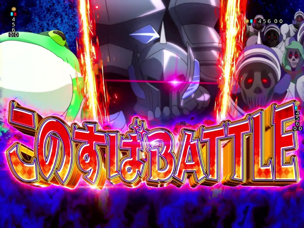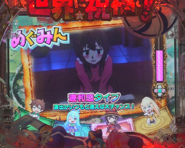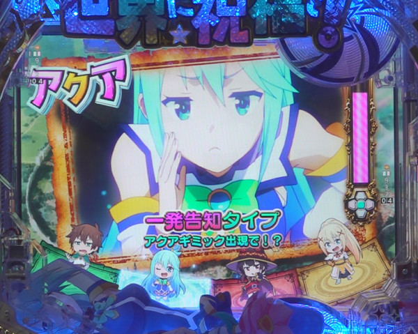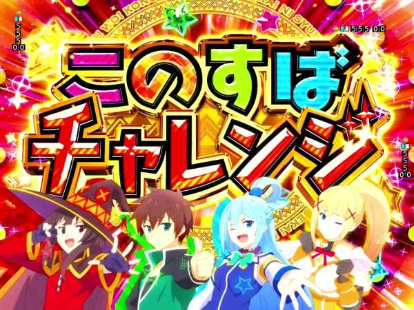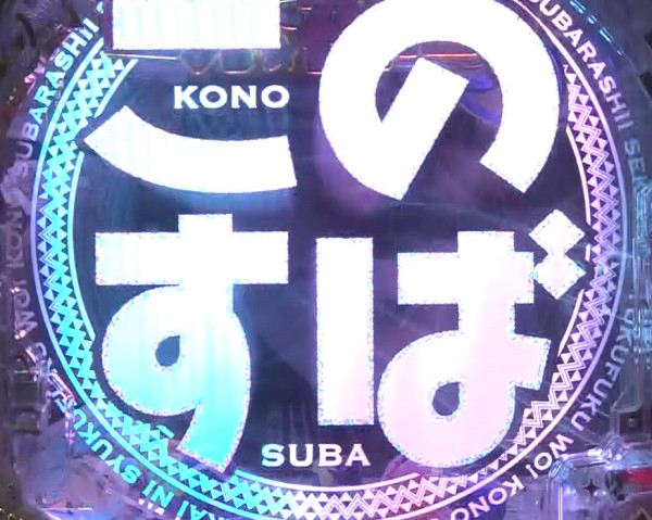 変動開始時にこのすばロゴイルミが点灯。白ならチャンス、赤なら大チャンス!