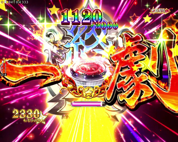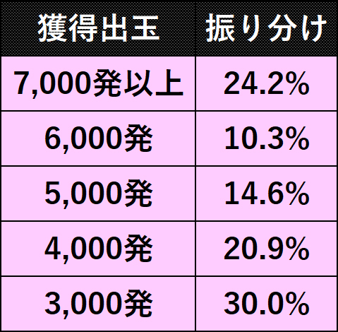 演出に成功すれば1,000発以上の上乗せ+追劇が継続で、成功率は約70%。突入時の期待出玉は10,454発以上。