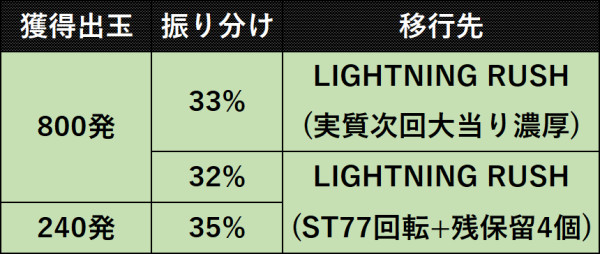 ■大当りの振り分け(「LIGHTNING RUSH」中)