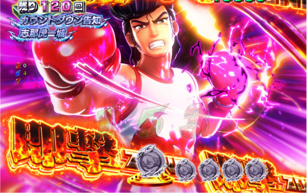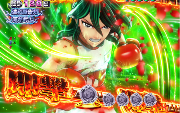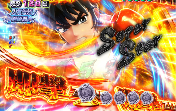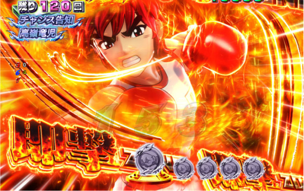 基本的に「K.O. RUSH」と同様の展開だが、大当りすれば1,200発以上獲得濃厚!? さらに、フィニッシュブローが発動すれば2,400発獲得!?
