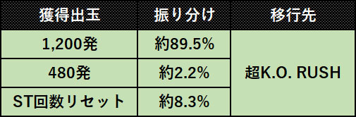 ■大当りの振り分け(「超K.O. RUSH」中・特図2)