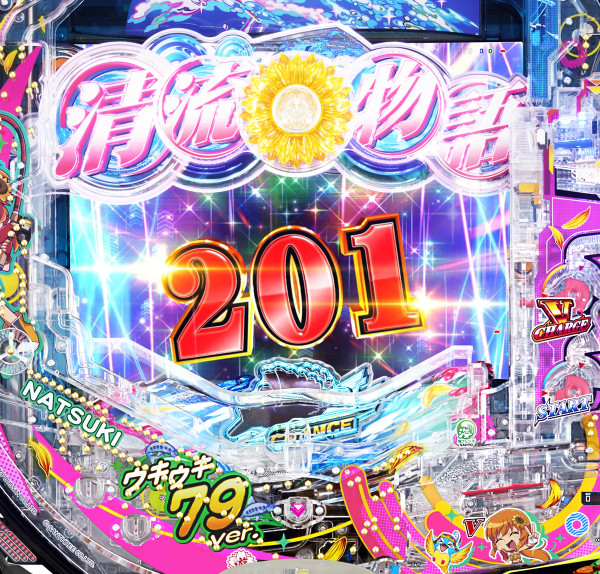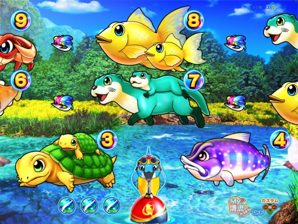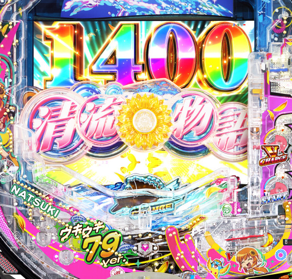 滞在中の大当り後は再び清流チャンスへ突入する仕様で、継続期待値は約70%。また、大当り時は約66%が700発以上獲得可能で、大当り全体の約33%が1,400発獲得可能。