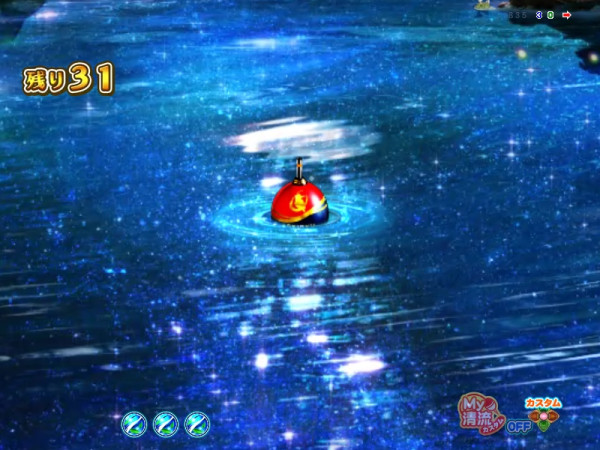 釣れるかどうかの緊張感にドキドキ。魚が喰いついてウキが沈めばリーチ演出へ!?