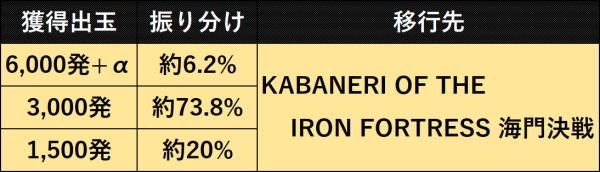 ■大当りの振り分け(「KABANERI OF THE IRON FORTRESS 海門決戦」中)
