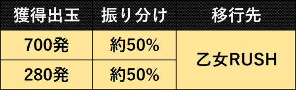 失敗時は280発獲得+ST70回転の乙女RUSHへ突入する。