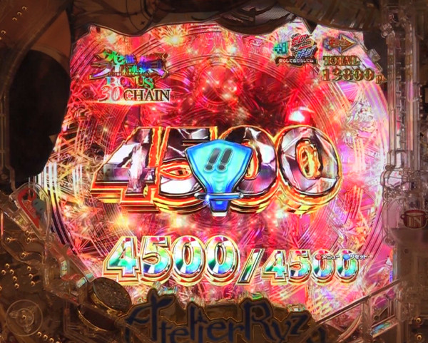 演出成功で4,500発がループする究極連鎖BONUSへ突入。突破率は約64%。
