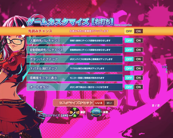 先読み予告の期待度がアップ。「OFF」「ON」から選択可能。