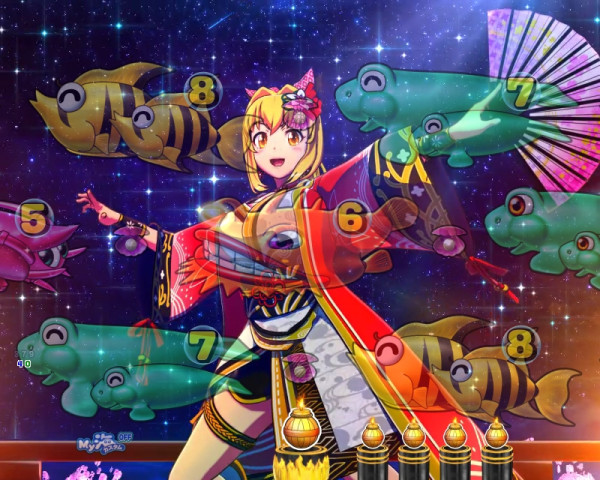 テンパイすればお神輿が出現し、お神輿に乗ったキャラクターに対応したリーチへ発展する。また、クジラッキーギミックが動くほどチャンスとなる。
