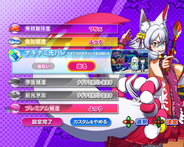 魚群予告の期待度が変化。「75%」「100%」から選択可能。