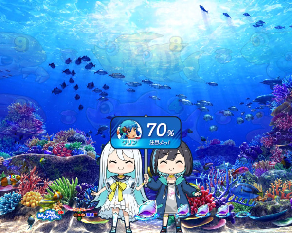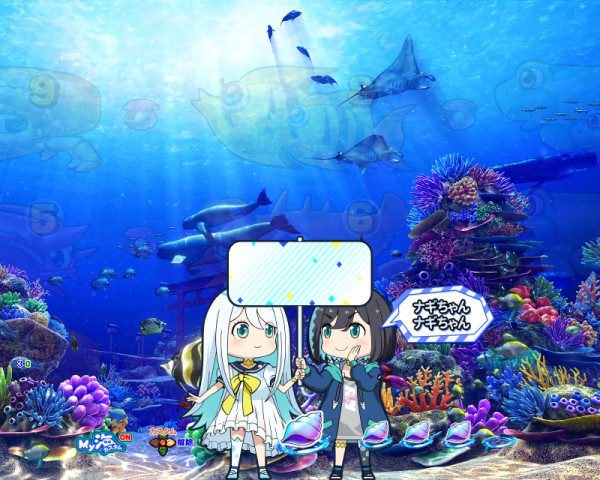 「100%」選択時の右打ち中はナギナミバージョンとなった特別な魚群「JAPAN魚群」に出会えるかも!? 出現すれば10R大当りor1,600発+上乗せチャンス獲得!?